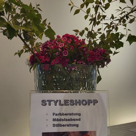 Wir bieten Euch von Montag bis Freitag verschiedene Möglichkeiten. Beim Basic Styletag verbringt Ihr ca 2- 4 Stunden zusammen mit einer Diplom Stylistin zu den ÖZ bei uns im Geschäft, für Getränke, Knabbereien und den nötigen modischen Pep ist gesorgt. Eurer Premium Mädelstag beginnt dann, wenn wir unser Geschäft schließen und nur noch für Euch da sind, die Ausgestaltung werden wir gerne in Absprachen mit Euch anbieten, nur so viel - wir haben schon einige tolle Events zur vollsten Zufriedenheit der anwesenden Mädels veranstaltet.