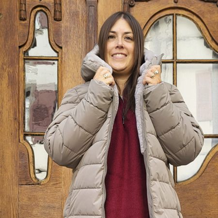 Beiger Daunenmantel: Perfekt für kalte Tage, schützend und vielseitig.